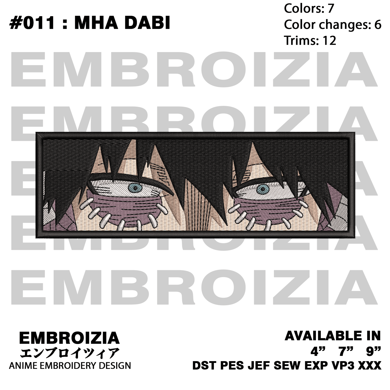 My Hero Academia Dabi eyes inspired anime embroidery design files